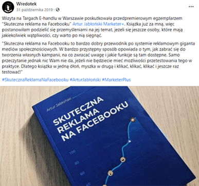 Pierwsze wydanie bestsellera „Skuteczna reklama na Facebooku” zostało w lipcu 2021 r. zaktualizowane (treści i ilustracje) oraz rozszerzone o nowe rozdziały na temat: