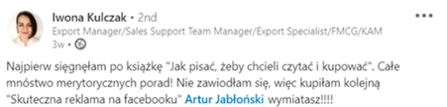 Autor bestsellerowych poradników biznesowych: „Skuteczna reklama na Facebooku i Instagramie” (książki, którą trzymasz w rękach), „Jak pisać, żeby chcieli czytać (i kupować)” i „Zrozumieć Marketing”, jak również jednego z najpoczytniejszych polskich blogów o marketingu – www.ArturJablonski.com – i podcastu „Konkretnie o marketingu”.